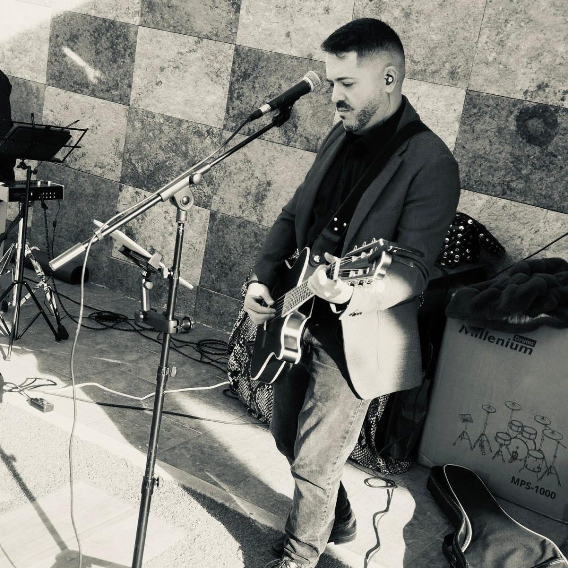 Su primer concierto fue como guitarrista en un grupo tributo a ABBA, y desde entonces ha participado en cientos de actuaciones: bodas, fiestas privadas, hoteles y todo tipo de eventos donde la música en directo crea una atmósfera única.